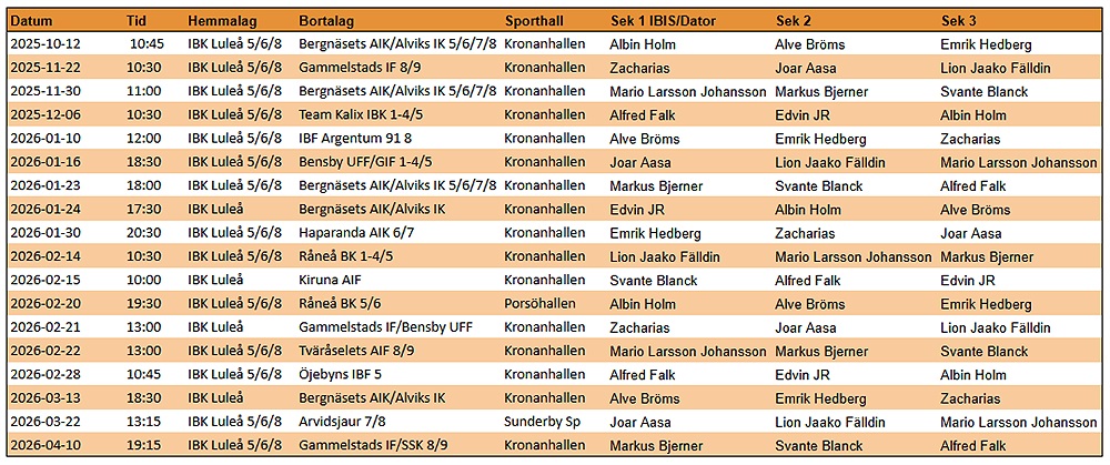 Nedan ser ni en lista på namn för bemanningen till sekretariat gällande säsongens hemmamatcher.